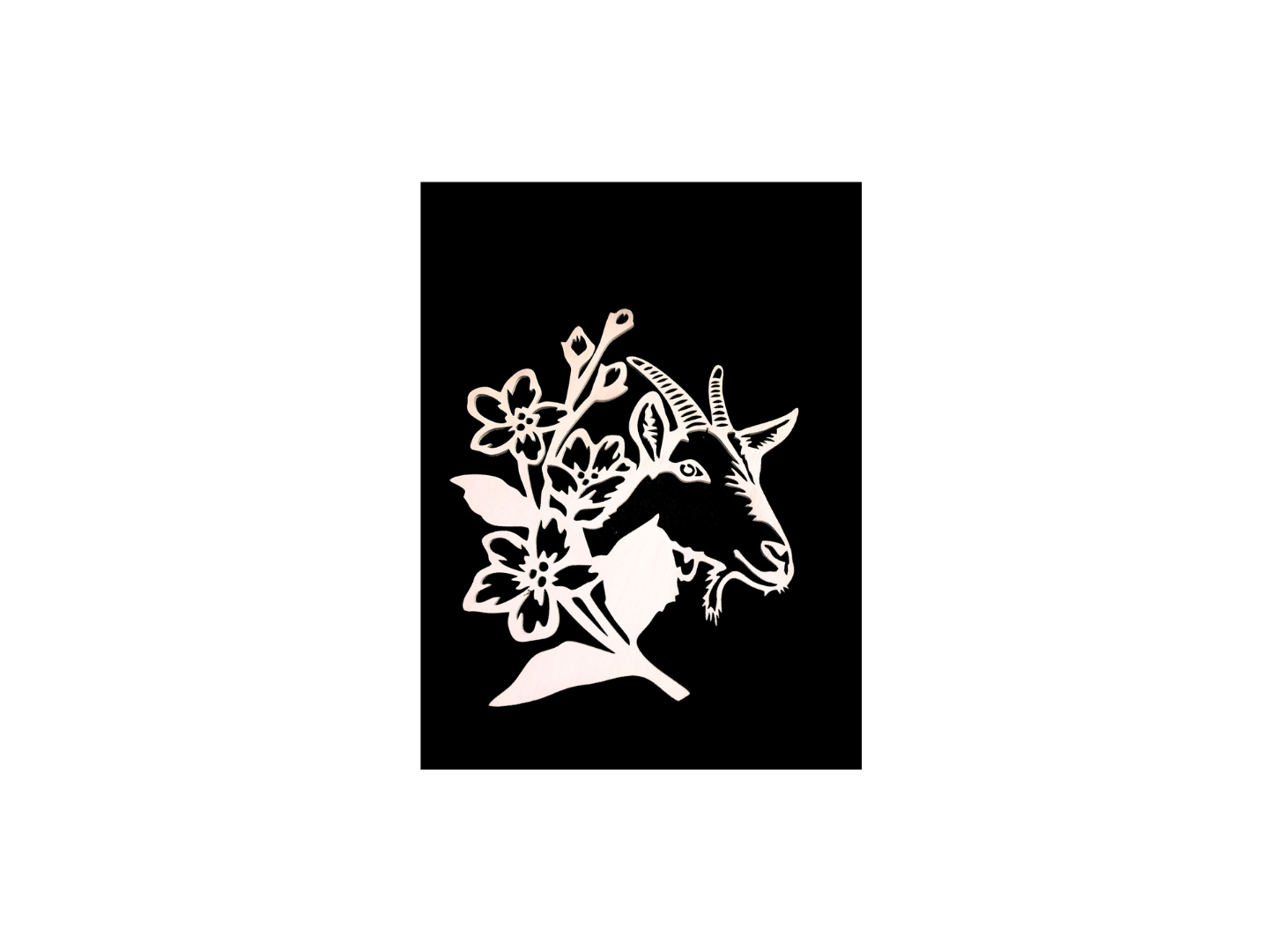 Découpe laser sur bois, décoration murale "Tête de chèvre"