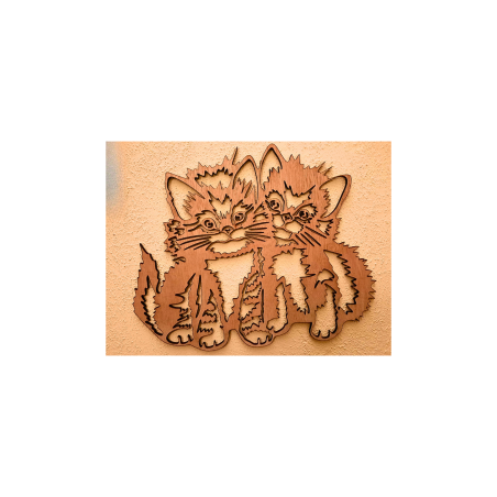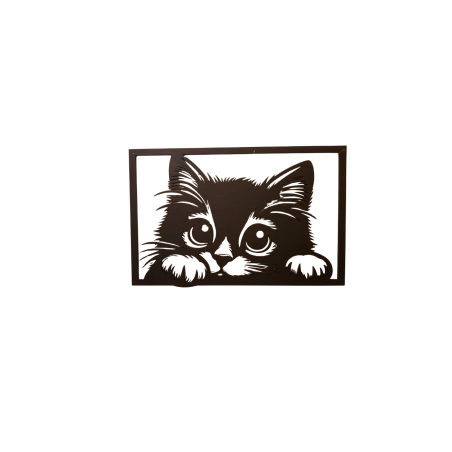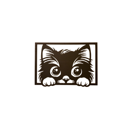 Décoration murale et découpe laser sur bois d'une tête de chat étonné
