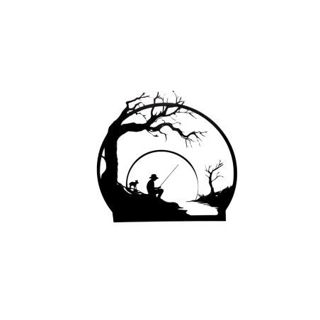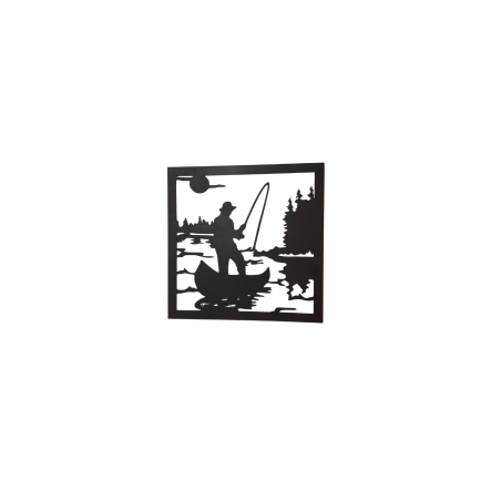 Silhouette d'un pêcheur à l’étang, décoration murale en bois