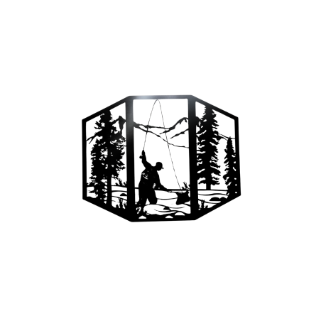 Décoration murale octogonale en bois "Le pêcheur dans la forêt"