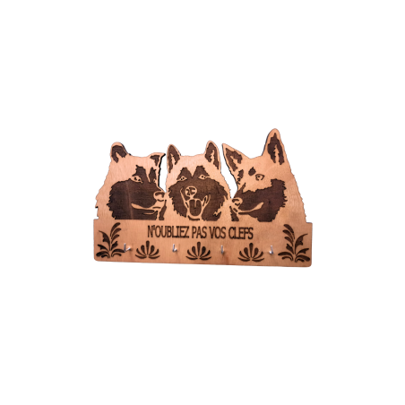 Trio de chiens, porte-clés mural en bois gravé (4 crochets)