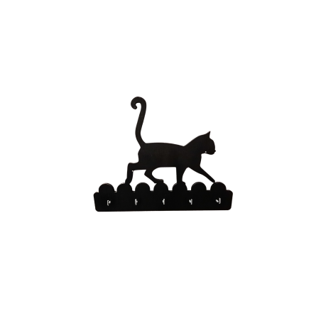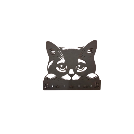 Porte-clés mural tête de chat, découpe laser sur bois (4 crochets)
