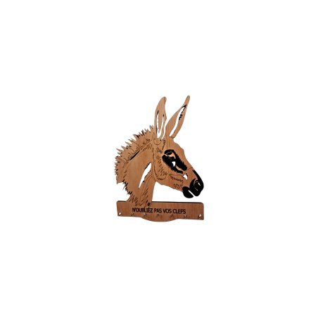 Porte-clés mural en bois gravé d'une tête d'âne Bourbonnais