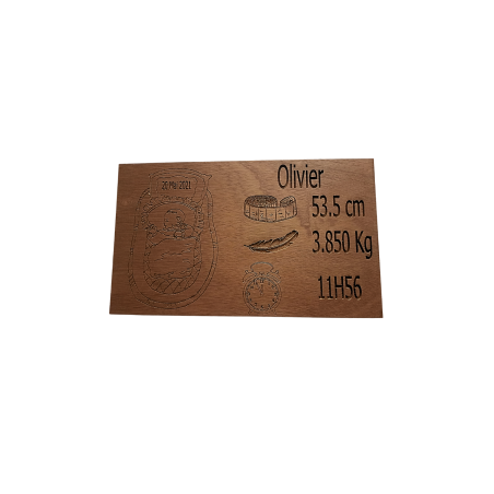 Plaque de naissance rectangulaire en bois gravée, personnalisée avec prénom, poids, taille, heure et date de naissance 18,00 €
