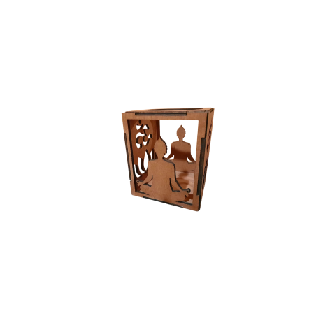 Découpe laser sur bois, pentagramme déesse dans un losange.