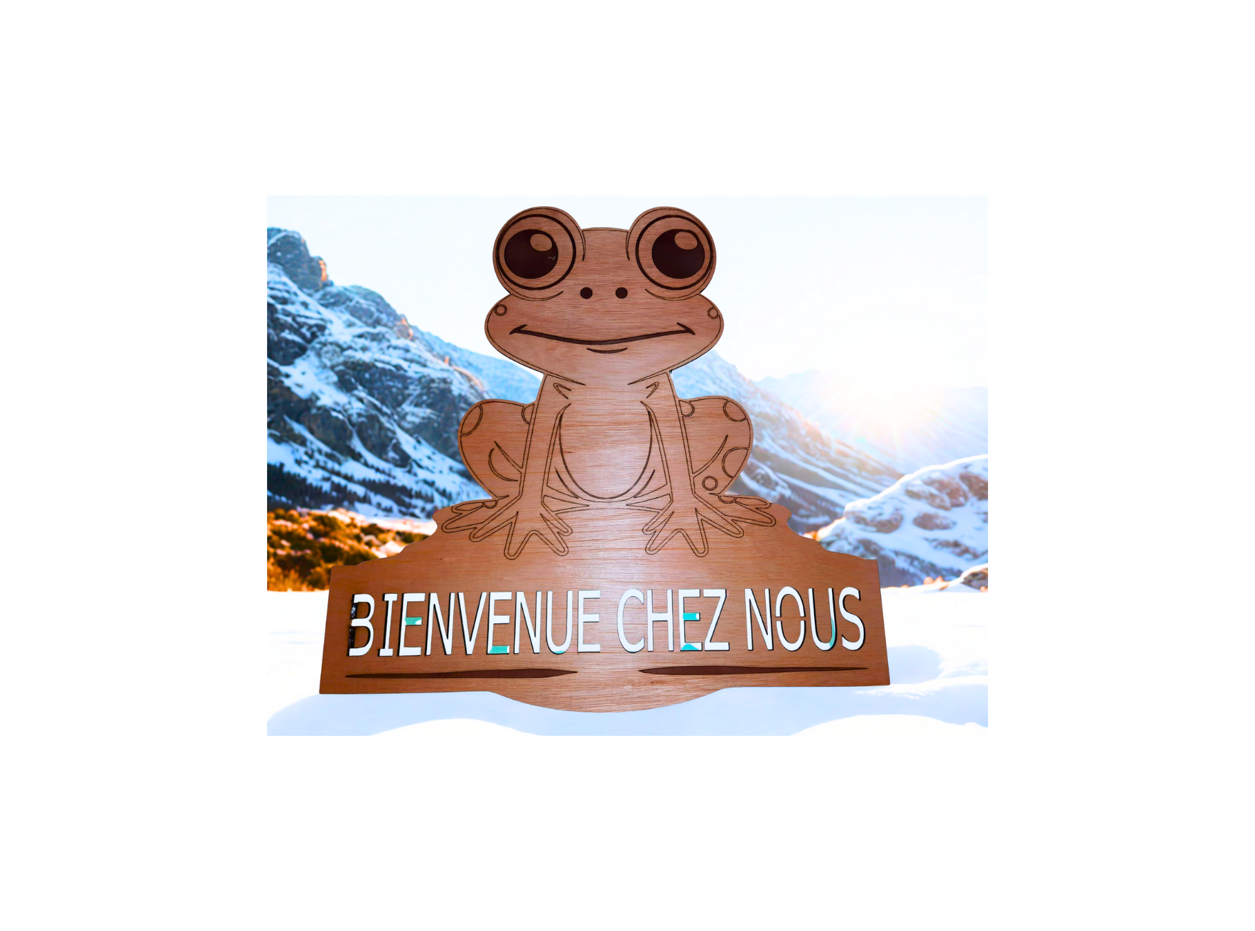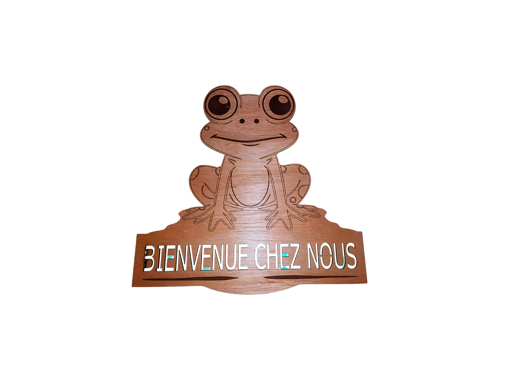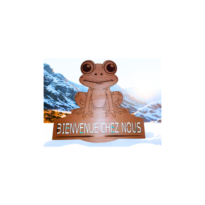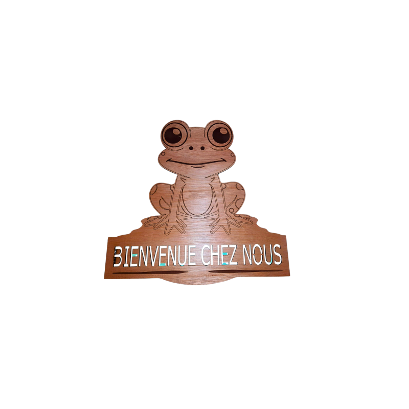 "Bienvenue chez nous" la grenouille, gravure laser sur bois