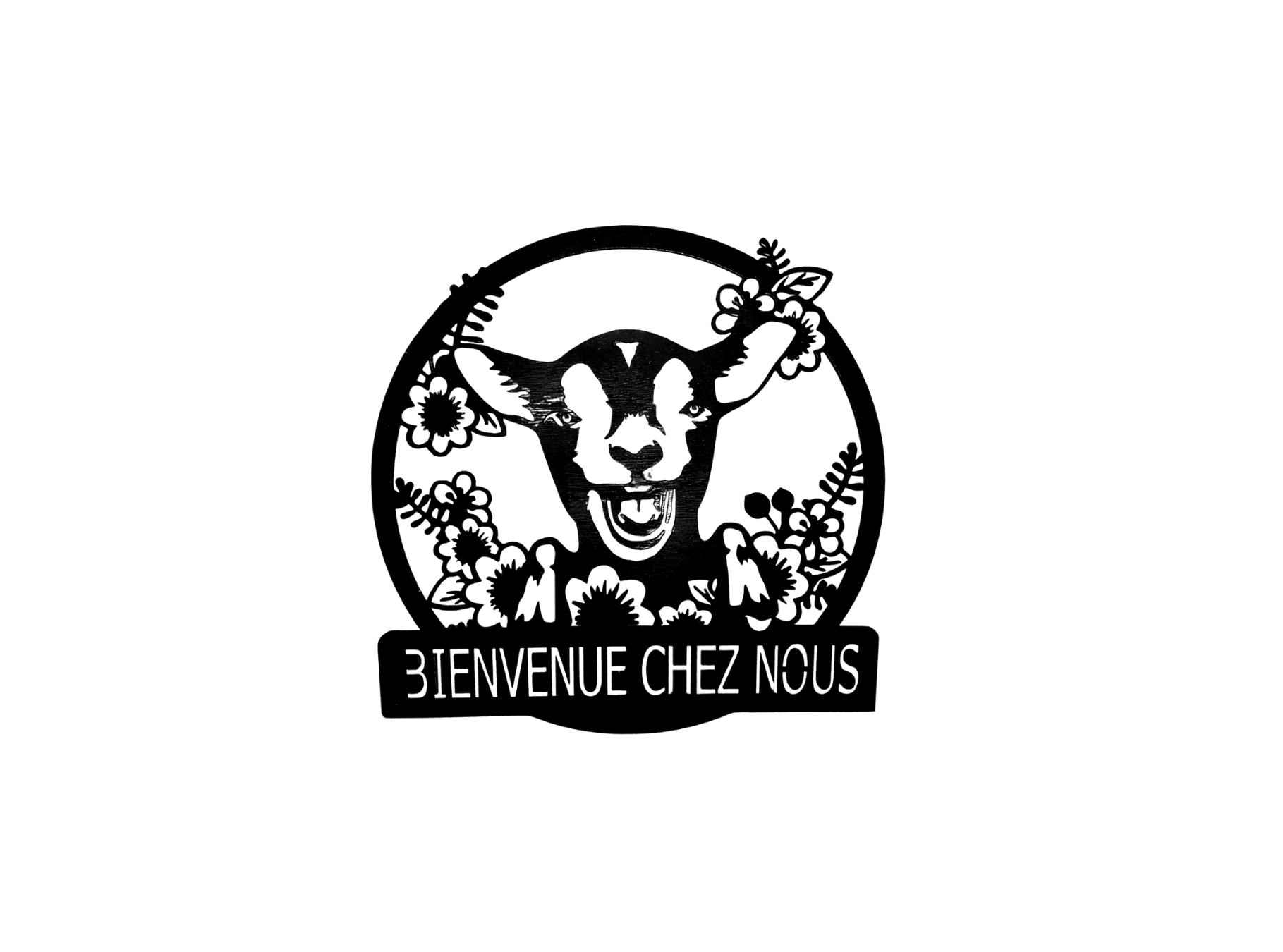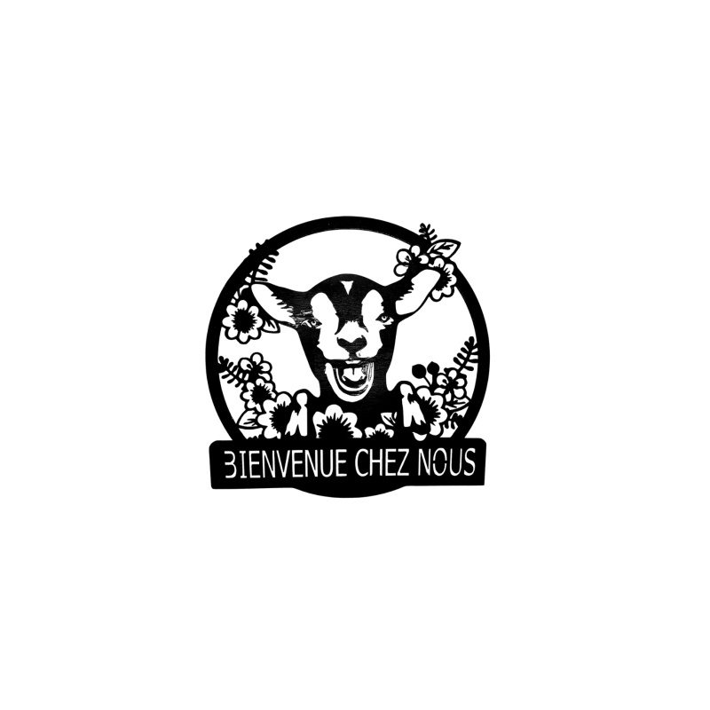 Gravure laser sur bois, "Bienvenue chez nous" tête de vache joyeuse