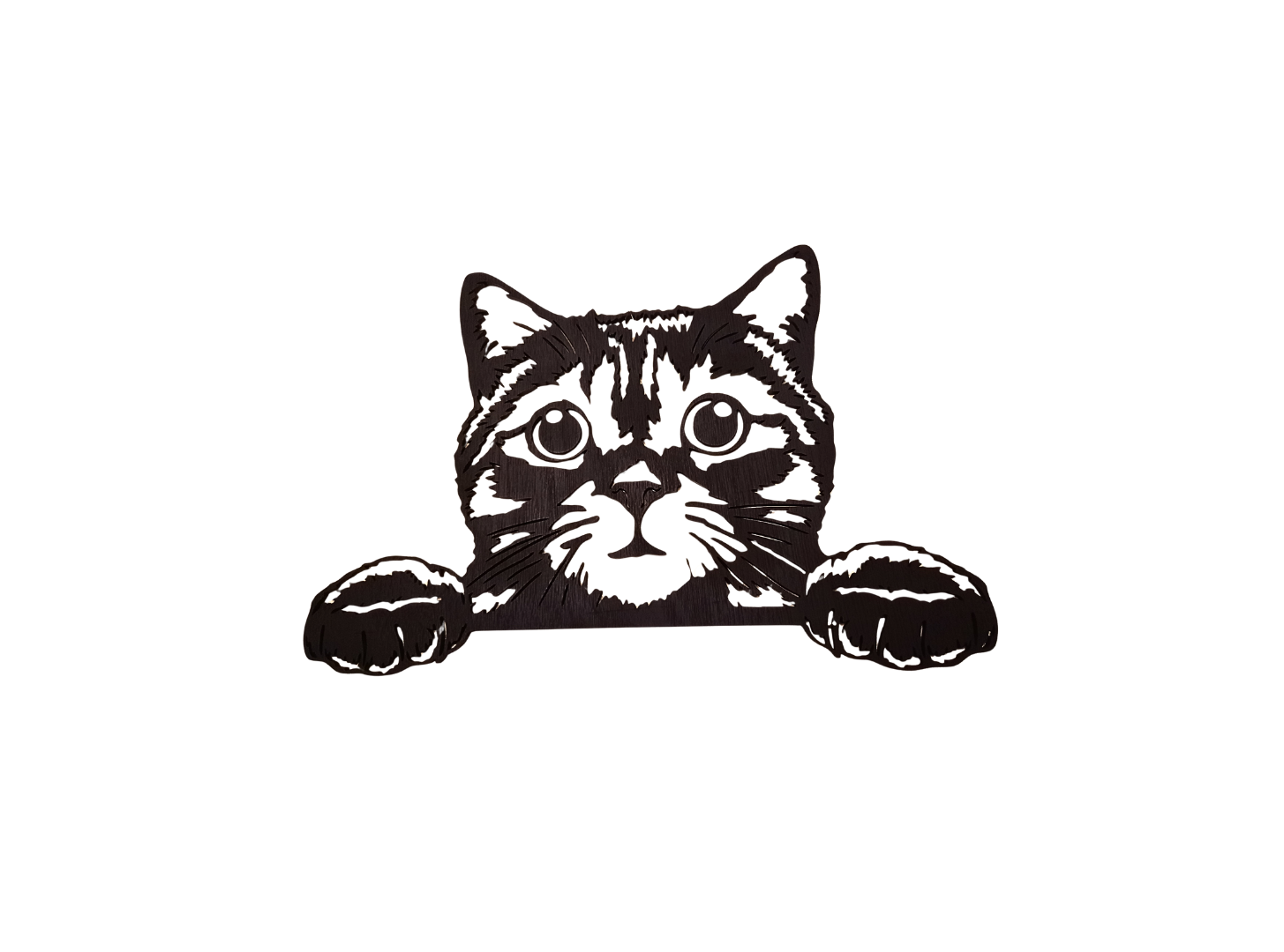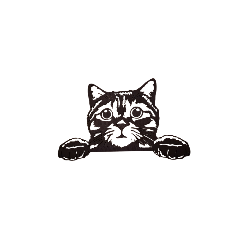 Décoration murale et découpe laser sur bois d'une tête de chat étonné