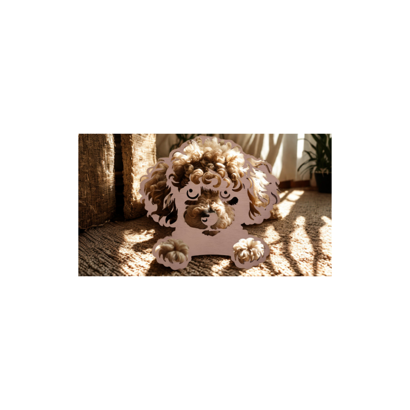 Décoration murale, découpe laser sur bois "Tête de Caniche"