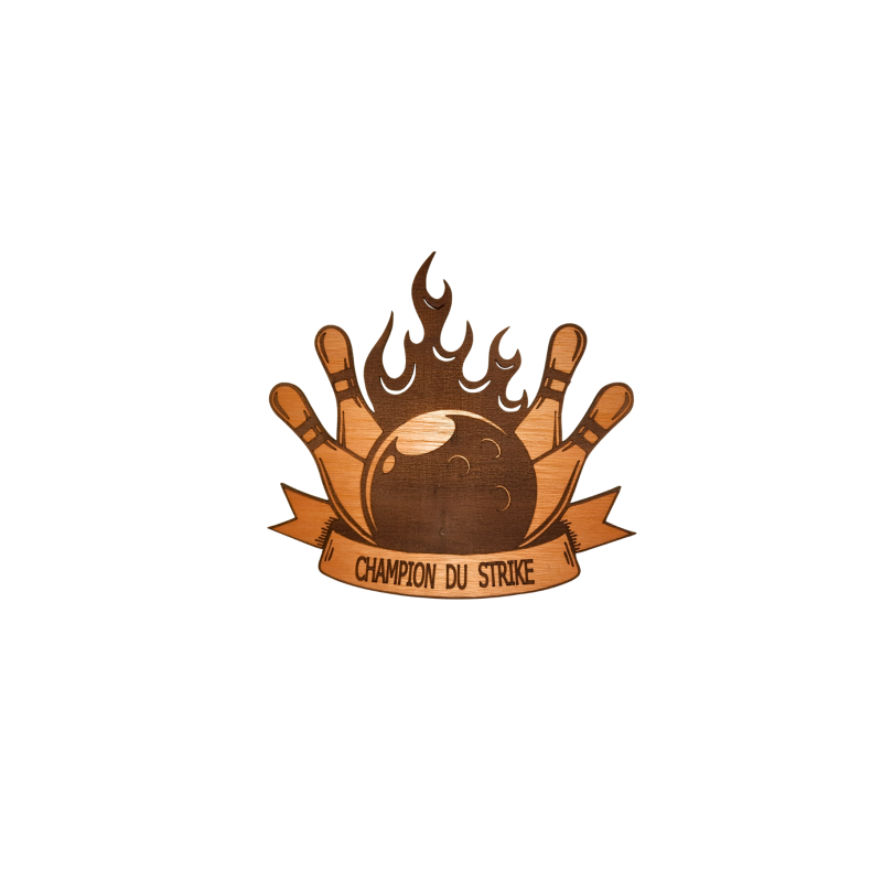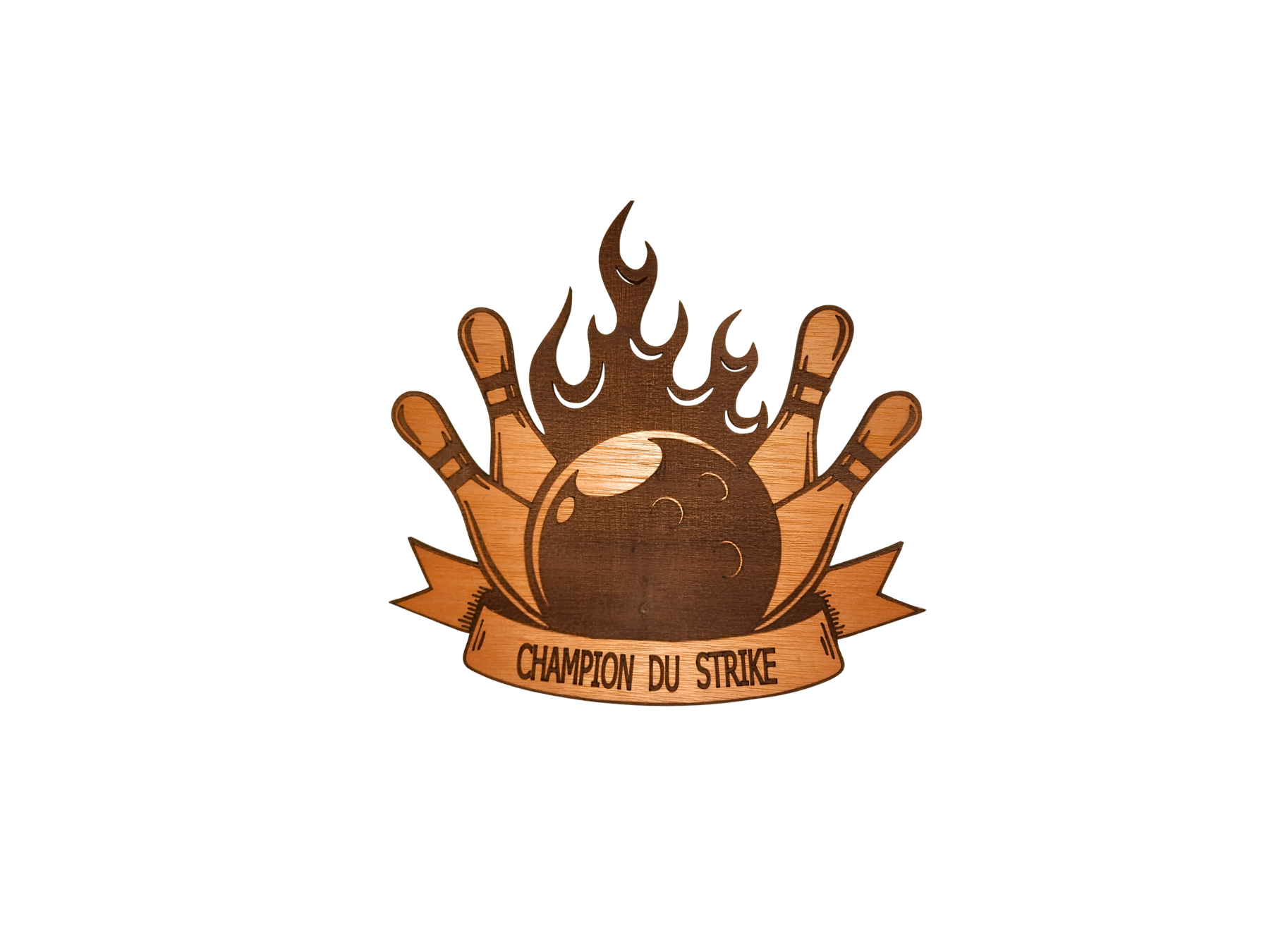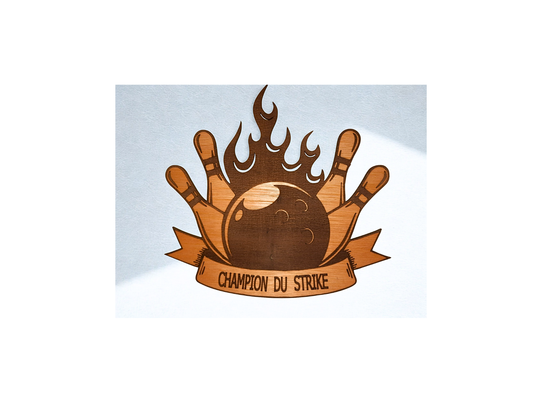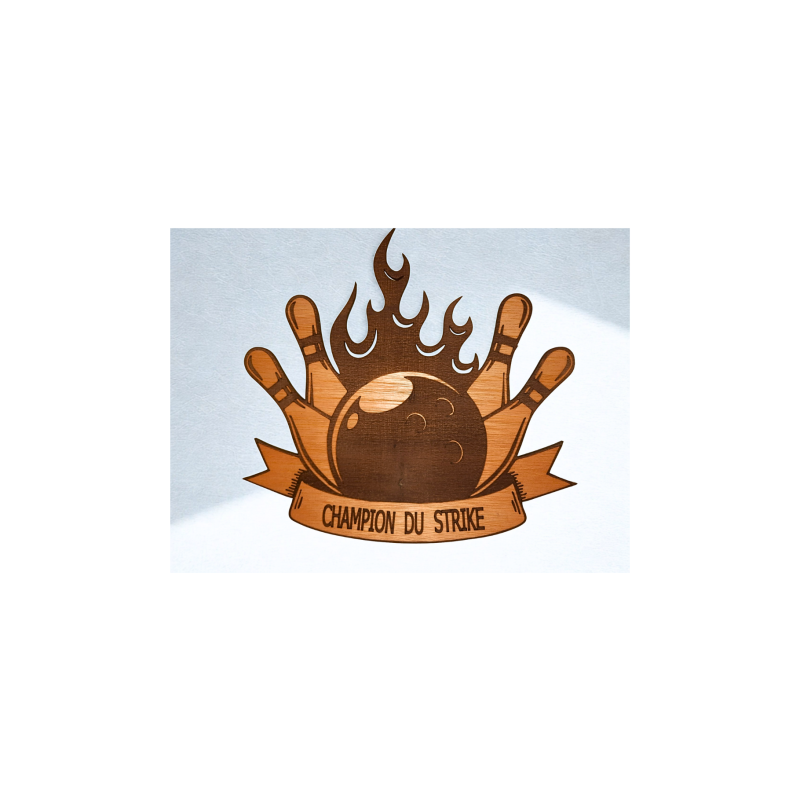 Gravure et découpe laser sur "Trophée bowling" inscription personnalisable