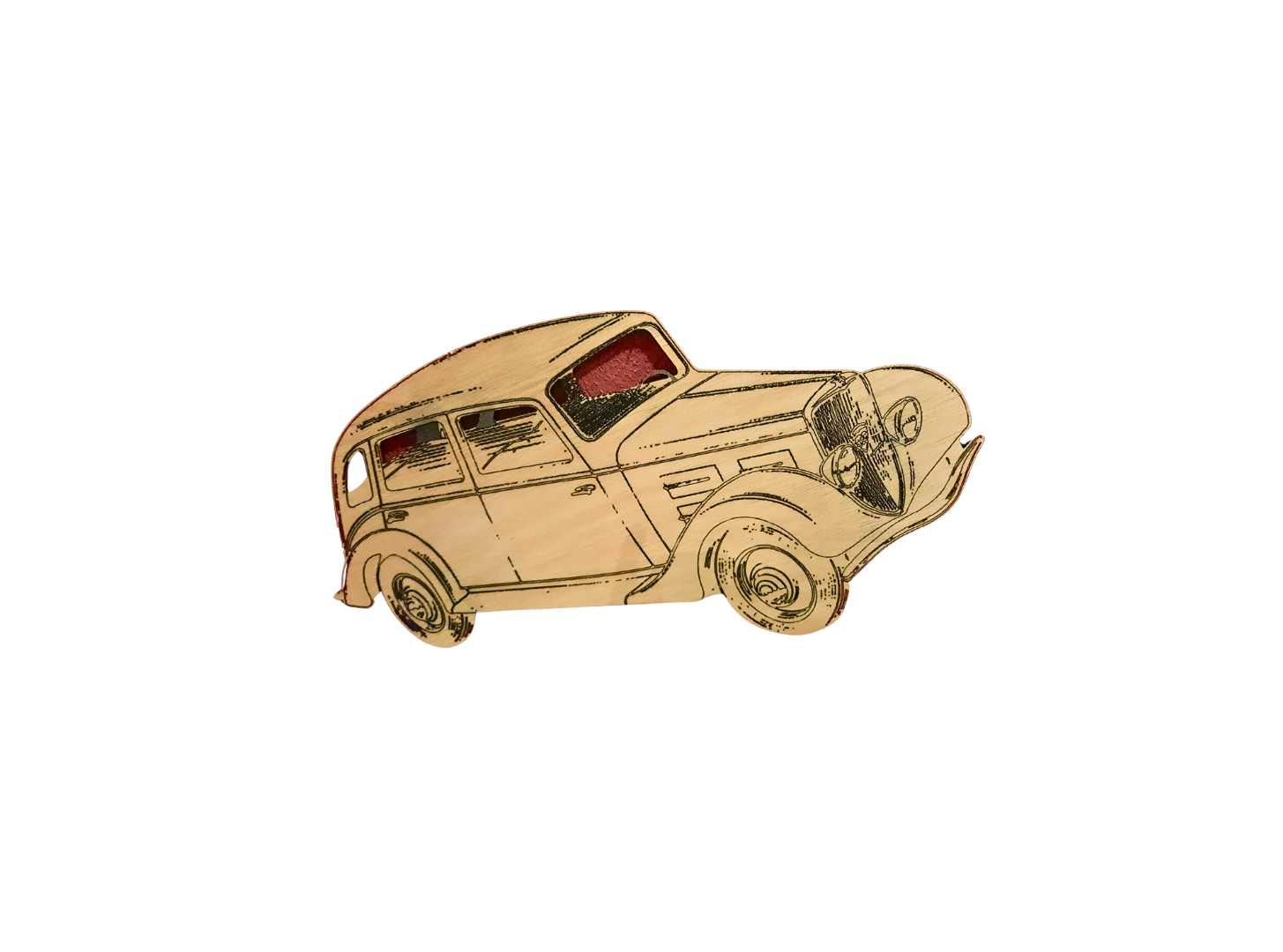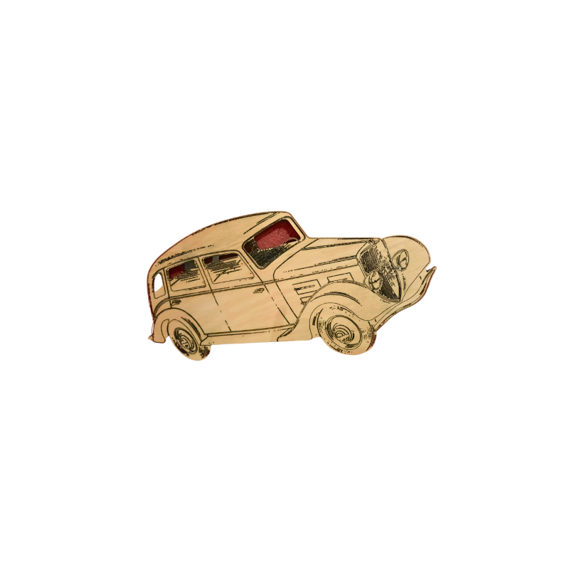 Décoration murale, voiture d'époque en bois gravée